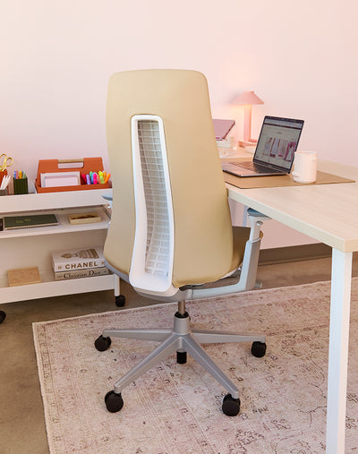 Individual workstations at Pink Lily are designed to balance focus and flexibility. Clean-lined desks and ergonomic chairs create a comfortable setup for deep work, while accessories in blush and neutral tones keep the look on-brand. Every station feels personal yet connected, helping team members stay productive and inspired.