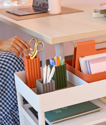 For Pink Lily, flexibility was key. Their Nashville office features modular workstations that adapt as the team grows, plus mobile storage carts that move with them. Every detail was chosen to support creativity and collaboration—while keeping their statement style front and center.